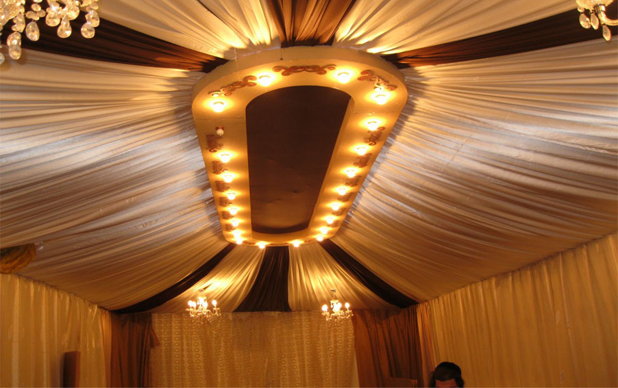 כל התקרה תכוסה ע"י בדים בשילוב צבעים ודוגמאות